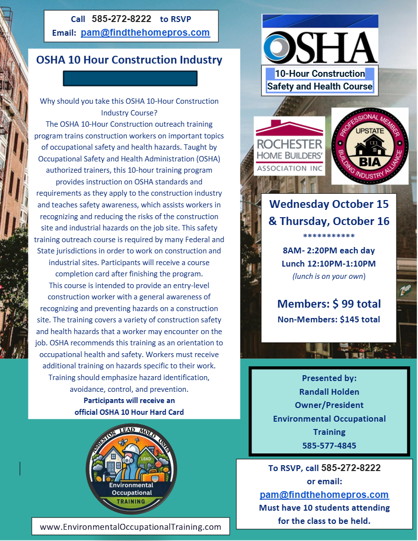 OSHA 10-Hour Construction Course Company Name: * Contact Name: * Email Address * Phone Number: * Are you a Member? * Yes No Member price $99 each Non-Member price $145 each How many will be attending? * 1 2 3 4 5 6 7 8 9 Total Price $ Captcha PayPal * We use PayPal to process our credit cards. Toward the bottom of the PayPal page we will direct you to is an option to use most any credit card. Submit If you are human, leave this field blank. Δ